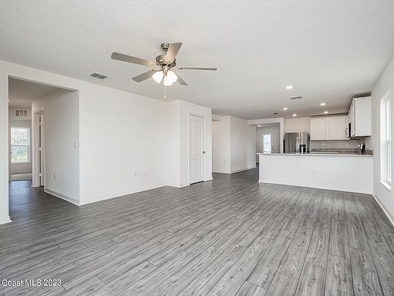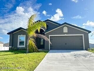 Ask us about our incentives, builder paid closing costs, & no down payment options! The Estero II floor plan serves as a spacious home for families and guests. Featuring an open concept floor plan, the home boasts 4 spacious bedrooms, 2 full bathrooms and is complete with over $10,000 in upgrades. These include energy-efficient Whirlpool® appliances, spacious granite countertops in the kitchen, stunning wood cabinets, brushed nickel hardware and an attached two-car garage. In addition, the Estero's secluded master retreat highlights a large walk-in closet. Best of all, this Palm Bay home offers residents a premier location with convenient access to nearby shopping, golf courses, world-class area beaches and amenity-packed parks. This home is located next to other new builds and on a lovely street in a peaceful neighborhood. It also offers privacy with all of the neighbors having fencing already up. **appliance models are subject to availability**