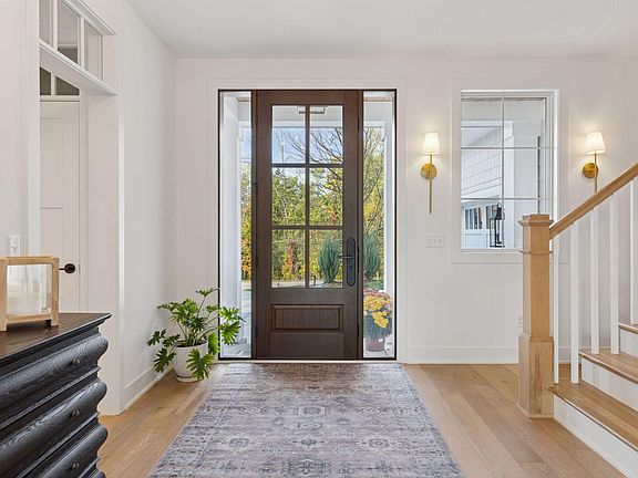 Situated in close-in Orono, just minutes from Downtown Wayzata, this home exemplifies thoughtful design with a seamless blend of elegance and everyday functionality. Upon entering, you'll be welcomed by archways and transom windows that create an open, airy atmosphere. The great room features beamed ceilings and the gourmet kitchen impresses with a striking combination of enameled cabinetry and natural wood. Adjacent to the kitchen, a well-appointed scullery enhances the home's function. Throughout the home, curated accents include wallpaper, textured tile selections, and a harmonious blend of crisp white walls and countertops with natural wood details, crafting a cohesive and fresh aesthetic.