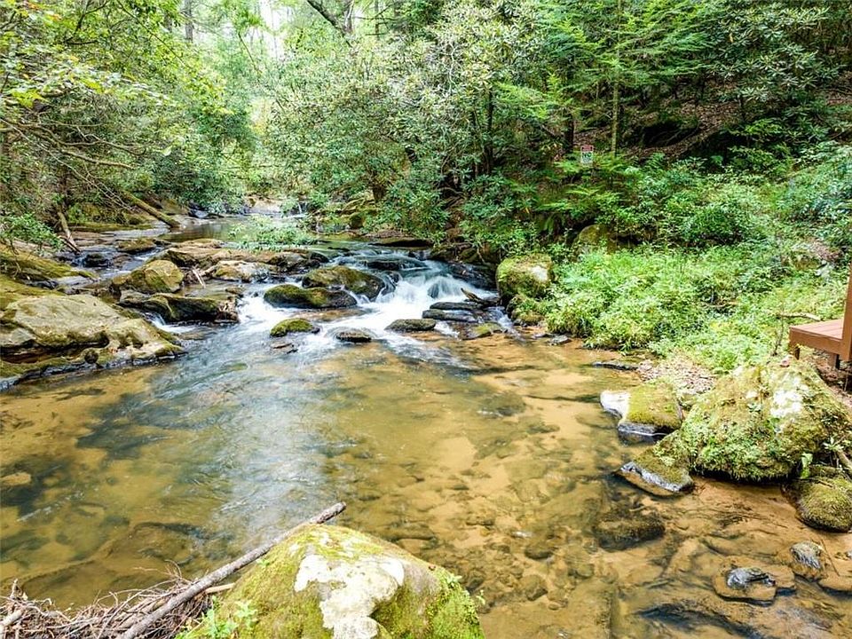 Check, check, check - this property checks all the boxes! Remodeled cabin in the woods sits on 2.84 acres on stocked Town Creek in the heart of wine country. Something for everyone! Starting from the paved street is a 60x20 metal "barn" with electricity and is a great workshop, car storage, and can also fit your largest RV. It has its own level driveway so backing in from the street is no problem. Surrounding the barn is a large grassed area should you want to bring your animal menagerie. A long driveway brings you to the main living area. A large 28x24 detached garage has high ceilings and is another great workshop. Upstairs is a finished office or separate living area with a new mini split heating/cooling system. Across the way, is what we call the "bunk house" which is approximately 20x28 with a half bath. Again, more living space! Step on over to the main house. You'll love the rustic yet luxurious cabin which features new hardwood floors, tile, and carpet. Updated kitchen with new appliances and granite countertops. Large newer windows make you feel like you're in a tree house. Huge bedrooms upstairs can accommodate several beds should you decide to share your private retreat. The partially finished basement also features a bedroom, bath, coffee bar, and lounge area. There is also plenty, pleeeeenty of storage and built-in shelving. Home has been newly painted inside and out as well. Outside, the wrap-around porch, deck, and patio offer lots of entertaining space. And, in case all this enjoyment wears you out, soothe your muscles in the new hot tub as you listen to the waterfall below. But wait there's more! An inground pool is just steps from the porch and features a new liner and pump. A fenced dog area lets Fido sniff around the wooded area carefree. A sturdy walkway takes you to a screened porch with a river overlook and further down is a generous deck with a sitting area right at the water's edge. Steps directly into the water make getting in to cast or splash a breeze. There is approximately 200 ft of river frontage. Enjoy all of this while listening to the waterfalls which can be seen (and heard!) from most vantage points of the main house. Water is serviced by well which has a new tank and pump. Underground utilities feed the properties so no ugly overhead lines that can be damaged by trees. Paradise Falls is a small, quiet neighborhood with most of the homes having river frontage. No HOA and larger private lots with high-speed internet access. All of this is just minutes north of downtown Cleveland with easy access to Gainesville, Dahlonega, and 400. And did we mention wine country? The closest winery is just minutes away and Cleveland, being the "Gateway to the Mountains", provides a great starting point for your mountain and outdoorsy adventures. Sound too good to be true? You'll be amazed. Don't let this one get away!
