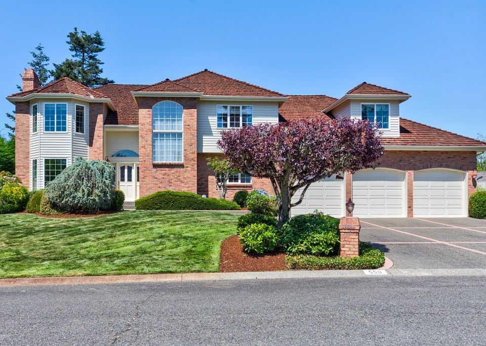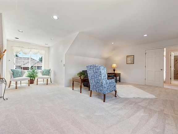 Elegance abounds in this beautiful home in The Ridge! Enter onto gorgeous hdwd floors stretching to updated kitchen which opens to large family room. Expansive, long lasting composite, deck overlooking private back yard with garden space. New carpet abounds leading upstairs to huge master suite w/his/her walk-in closets and sitting room. 2 other bedrooms + bonus which could be 4th bedroom, complete upstairs living. Garage has 3/4 bath for after gardening or washing pets! So much to enjoy here!