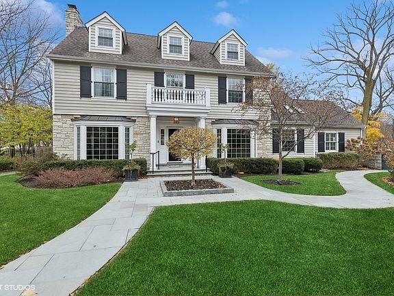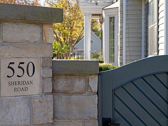With a beautiful presence perched up high on the premier corner of Sheridan Road & Elm Street, this coastal colonial captures the essence of East Winnetka living with the lake only a stone's throw away with access to 2 beaches, a 3 min walk to Village Green, 5 min walk to grab a Hometown bagel sandwich on the way before jumping on an express train to be downtown in 23 min. Yes, it's that easy... as it all starts with a brand new gorgeous gated entry & front yard by luxe landscaper with chic custom wooden gates outfitted in Farrow & Ball Hague Blue complemented with an expansive blue stone walkway and front patio space. Step through the formal foyer into light-filled foyer with classic staircase covered in a Stark navy & blue runner that sets the tone for this classic traditional floorplan. Sun-drenched living room w/ picture perfect floor-to-ceiling windows & fireplace w/marble surround leads to an elegant dining room with custom corner matching built in cabinets & huge bay window over looking premier Sheridan Road. Cheerful newly updated all white Chef's kitchen with NuHaus custom cabinetry, white & grey quartzite countertops, S/S appliances & new island. Ideal open family room to kitchen concept with another fireplace & vaulted ceilings which natural light that floods through the skylights. Direct access to rare attached 2 car garage and back door to patio access. Cute & cozy private main-level office with built-ins & dutch door allow for perfect place to step away too. The 2nd floor delivers 3 bedrooms including a beautifully redone primary suite with handsome renovated designer spa bath with white porcelain floors accented with a walnut vanity and dark navy Phillip Jeffries wall coverings. Huge walk-in dual head shower & soaking tub complete this retreat space. 2 additional bedrooms on this level share a hall bath & convenient stackable washer/dryer located in the hall. On the 3rd level, a retreat ideal for teens, guests with 2 oversized bedrooms & full bath with great natural light & awesome privacy. Full lower level all refreshed in a light grey hue with matching cream berber carpeting lightening up this whole space with two large rec rooms with 3rd FP, second laundry room, and a full bath - plenty of space to play, work out, or relax. This is the best of the best for under 2m on a prime corner lot across from the most expensive lakefront properties in the entire North Shore! Location, location, location is the name of the game but it's even better when the house is turn key perfect! Come enjoy an easy-breezy lifestyle at 550 Sheridan Road.