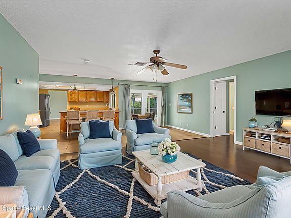 Beautifully updated 3-bedroom, 2-bath home featuring bamboo wood flooring and newer hurricane-rated double-paned windows and doors throughout. Enjoy a spacious family room with a cozy wood-burning fireplace and French doors that open to the patio and sparkling pool area — perfect for entertaining. The home also offers a formal living and dining room and a well-designed kitchen with a convenient layout and pass-through patio window. The primary suite includes a beautifully upgraded bathroom, creating a relaxing retreat. Outside, you'll find a fenced yard with an inviting in-ground pool, mature fruit trees, and a large patio area ideal for gatherings. Owned/paid off solar panels with battery backup provide exceptional energy efficiency and peace of mind — even if FPL power goes down, the home continues to run, including the air conditioning.