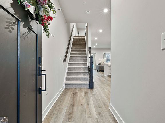 Experience the best of suburban living in this stunning, newly built townhome community! Designed for modern comfort, this home offers the perfect blend of style, space, and convenience. The first floor welcomes you with an open-concept design, soaring high ceilings, and sleek wood laminate flooring. A luxurious kitchen fitted with quartz countertops and stainless steel appliances is at the heart of the home, perfect for cooking and entertaining. A half bathroom on the main level is also ideal. Upstairs, a cozy loft is situated directly off the spacious master suite, offering a peaceful retreat. The master bedroom features a private bathroom and a generous walk-in closet, while additional bedrooms provide ample space for family or guests. A dedicated laundry room adds ease to everyday living. A two-car garage ensures ample storage, and the private backyard is ideal for hosting guests or simply unwinding. Landscaping is included in the monthly association fee, making outdoor upkeep a breeze. The Village Town community is located within walking distance of downtown Fayetteville, just 20 minutes from Hartsfield-Jackson International Airport, and a short drive to Trilith and the Pavilion. This home is perfectly positioned for work, play, and everything in between. Don't miss your chance to make this beautiful townhome yours!