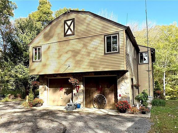 “Where Rustic Charm meets Peaceful Country Living.”...Discover this 3-bedroom home with modern updates on 1.55 private acres! Tucked at the end of a quiet, dead-end street, this distinctive 3-bedroom, 2-bath Gambrel-style raised ranch blends rustic warmth with modern comfort. Inside, rich wood walls and natural finishes create a welcoming, cabin-like feel throughout. Recent updates include energy-efficient mini-splits, a newer roof, vinyl siding, gutters, oversized windows, a sliding door, and updated appliances for everyday convenience. Set on 1.55 private acres with a small pond, this property offers space for gardens, farm animals, or outdoor entertaining—all while still being part of a quiet neighborhood setting. You’ll enjoy privacy and peace, yet with the comfort of nearby homes and community close by. Major systems have already been upgraded, and the interior is ready for some upgrades/your own personal choices—an ideal opportunity to create your own peaceful retreat. Enjoy the best of both worlds: a nature-filled setting with neighbors nearby and amenities just minutes away!