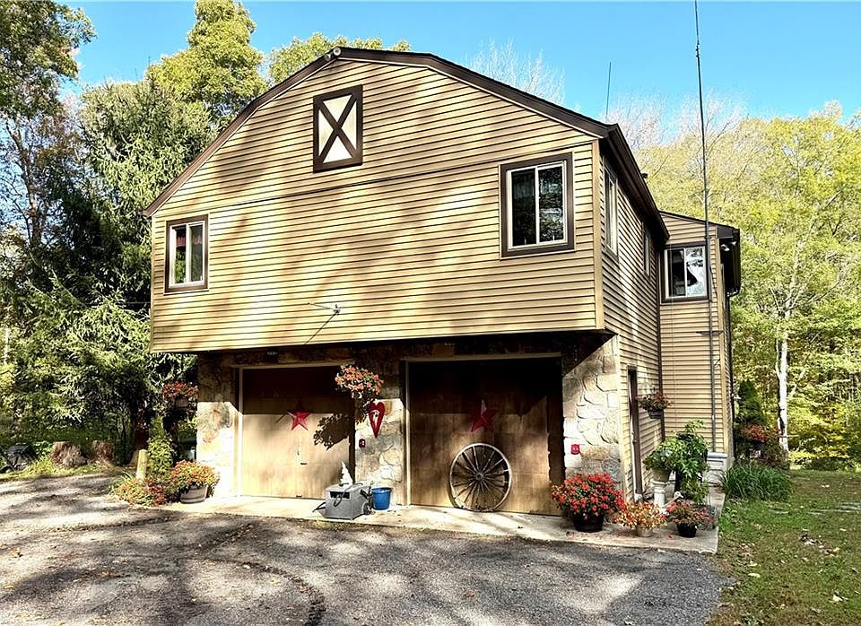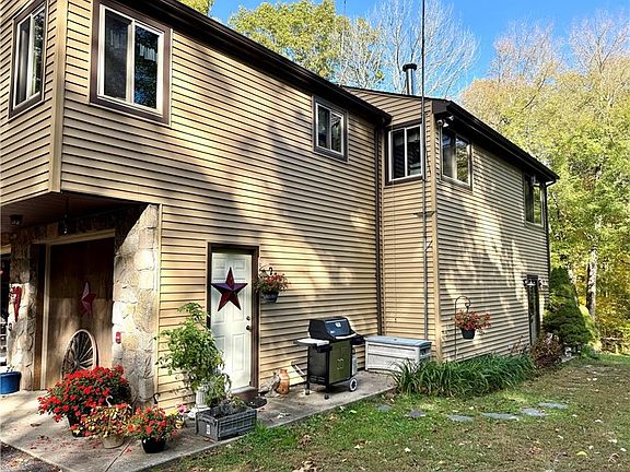 Enjoy the tranquility of nature while staying just a short drive from local amenities. Nestled in a serene, wooded setting, on a dead end street, this unique 3-bedroom, 2-bath gambrel style raised ranch blends rustic charm with modern updates — and offers the opportunity to add your personal touch. Recent improvements include: Three energy-efficient mini-splits for year-round comfort, one layer roof, vinyl siding, gutters, oversized windows, and a sliding door. Updated hot water heater, newer stove and microwave too! The home is a traditional raised ranch featuring a distinctive layout, and cozy entry-level living area. The kitchen, and bedrooms, are located upstairs offering a true raised ranch design. Set on 1.55 acres, there's plenty of outdoor space, including a small pond, with potential for animals. While several major systems have already been upgraded, some interior areas could benefit from cosmetic updates — making this a perfect opportunity to create a retreat that truly reflects your style. Whether you're looking for privacy, potential, or a place to grow, this home is ready for you to make it your own!