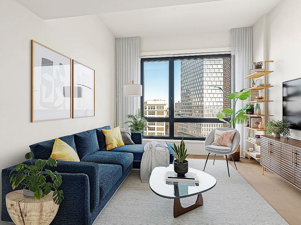 Residents enjoy 10,000 square feet of first-class amenities, including a 24/7 attended lobby, a curated library by McNally Jackson, a state-of-the-art fitness center by The Wright Fit, a residents’ lounge with catering kitchen, a children’s playroom, a pet-grooming studio, and an expansive rooftop terrace with lush plantings and panoramic city vistas.