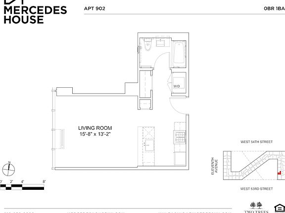 Mercedes House, New Yorks most important new residential development is changing the cityscape forever. From Two Trees Management Company and visionary architect Enrique Norten comes a luxury rental complex spiraling 32 stories above the city with unobstructed views of the Hudson River. A modern tower of glass and greenery. The good life is lived here. Bold design. Midtown convenience. Mercedes House is the address for life in style.