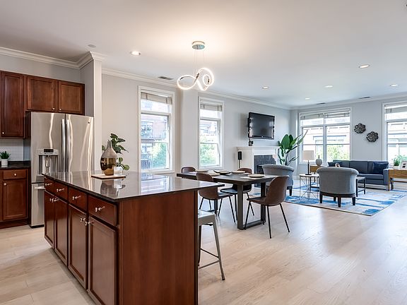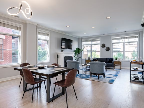 Fulton Market Living at Its Best! If you're looking for space, light, and comfort in a 2bd/2ba home, this spacious residence checks every box! Oversized windows flood the open layout with natural light, highlighting hardwood floors, tall ceilings, space for a full dining table and a cozy living room with fireplace and wired for surround sound making it perfect for both entertaining and relaxing. The chef's kitchen impresses with 42" cabinets, granite countertops, a functional breakfast bar island, glass tile backsplash, and stainless steel appliances. The king-sized primary suite is a private retreat, complete with multiple closets including a walk-in and a luxurious en suite bath featuring dual vanity, soaking tub, and a separate stone shower. The spacious guest bedroom easily fits a queen bed, while the second full bath is conveniently accessible. Step out onto the private balcony, accessible from both the living room and primary suite, for your morning coffee or evening unwind. Additional perks include in-unit laundry, large storage closet and garage parking. Located just steps from the park, METRA, highways, and Jewel, and surrounded by some of Chicago's world-renowned dining experiences, this home truly has it all!