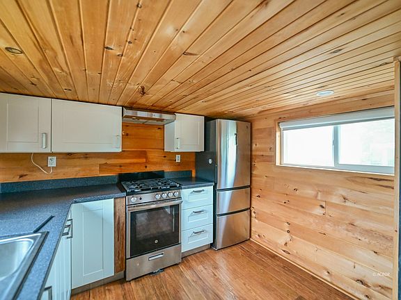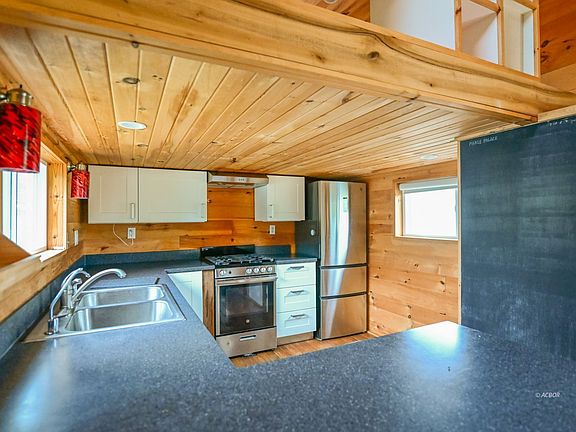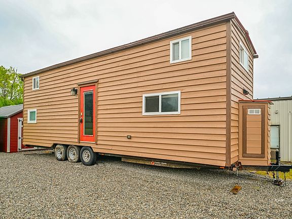 Tiny Home, Big Living: Twice the Space in Half the Size! You've read about them, maybe you've seen them, possibly you've stayed in one. But here's your chance to OWN one!. That's right: this remarkable house has a big heart and is built to move with you or settle where you plant it. Built on a triple-axle chassis with cedar siding, double-pane windows, metal roof, and gutters, this home offers exceptional durability, with style to boot. A full kitchen larger, than many conventional homes, features eat-at peninsula, double-bowl sink, abundant cabinets, and hardwood floors. Tongue-and-groove pine walls, lofts with wood floors, custom built-ins add warmth and character. The spacious bath includes a washer/dryer hookup, subway-tiled shower, extra deep soaking tub, and whitewashed walls with tile flooring. There are two sleeping lofts, both with built-in shelves and storage, one with an office desk! Windows flood the space with natural light, while a high-efficiency mini-split keeps it comfortable year-round. A rare chance to own a thoughtfully designed tiny home, ideal for Airbnb investors, off-grid dreamers, and first-time homesteaders. Sale does not include land or real estate. Trailer is titled. Won't last long!