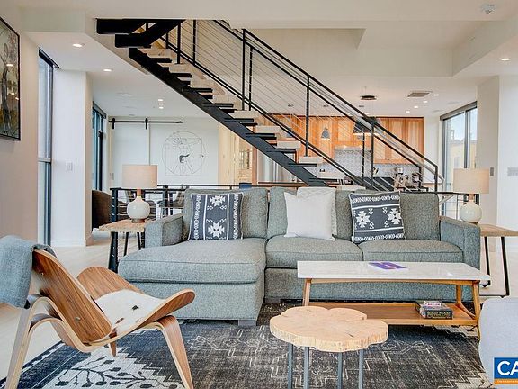 Located just one block from Charlottesville’s Historic Downtown Mall, The 550 represents the pinnacle of boutique, luxury living. Designed by Formwork and constructed by Martin Horn, this award-winning glass and brick landmark was recognized by the Urban Land Institute as the Most Influential Residential Construction Project of 2018. It is the only residence in the building with its own private entrance off Water Street. This striking three bedroom, three bath home features architect-designed details through out, including a stunning custom staircase, expansive windows and an open-concept living space that seamlessly blends style and function. Enjoy both a private covered terrace and an expansive rooftop deck with panoramic downtown and mountain views. The full-floor primary suite offers exceptional privacy and comfort, while two additional bedrooms provide flexibility for guests or a home office. Additional highlights include secure garage parking for two vehicles and the ease of low-maintenance, lock-and-leave living all in one of Charlottesville’s most desirable downtown locations.