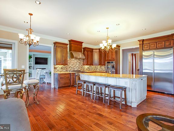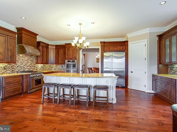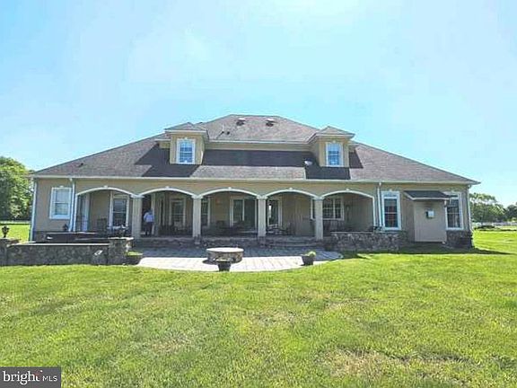 Presenting an executive custom contemporary residence prominently located on 2 acre level lot, featuring a circular driveway that gracefully leads to a U-shaped home boasting a 4-car garage evenly distributed on each side. Upon arrival, guests are greeted by a grand entrance adorned with four columns and archways. The home's exterior is characterized by stucco and stone elements, with an imposing 8-foot front door setting a tone of refined allure. Step into the foyer, where a two-story expanse commands attention, featuring arched doorways and decorative columns throughout. On the main level, discover a sumptuous owner's suite bedroom boasting 12-foot ceilings and an exquisite tray ceiling, accentuating its grandeur. This sanctuary offers direct access to the outdoor living area, seamlessly blending indoor comfort with outdoor serenity. Pamper yourself in the opulent walk-in closet, featuring a built-in dresser with a granite countertop and a meticulously designed closet organizer, maximizing both style and functionality. Accessible from both the owner's suite and the adjacent laundry room, convenience is paramount. Indulge in the en suite luxury bath, adorned with high-end cabinetry and granite countertops, framing a dual sink vanity. A resplendent tray ceiling with a decorative chandelier illuminates the space, while designer Taverne tile flooring adds a touch of sophistication. Relax in the pedestal tub or refresh in the walk-through shower, complete with multiple showerheads and a built-in bench, ensuring a spa-like experience. For added convenience, His & Her water closets provide ultimate comfort and privacy. A second main level In-Law suite bedroom awaits, featuring a Trey ceiling and a spacious walk-in closet. The en suite luxury bathroom boasts marble floors, a marble top vanity, and a step-in shower with a designer tile surround and built-in bench. The kitchen is a culinary haven, boasting commercial grade Thermador stainless steel appliances including a four-burner gas stove with griddle, complemented by a built-in pot filler faucet and wall oven with warming drawer. An oversized 11-foot island features a copper farm sink and granite countertop, accompanied by luxury amenities like pullout drawers and soft-close cabinets. The family room showcases a luxury tray ceiling and stone gas fireplace, while the living room features built-in cabinetry and an oversized sliding glass door to the outdoors. Formal dining is elevated with crown molding and a decorative chandelier. Designed for productivity, the executive office boasts high-speed internet and Wi-Fi extenders, while the upper level offers additional bedrooms (each has its own full bath), a theater/media room, and a second home office/hobby area. Outside, discover a private sanctuary featuring a covered stone patio, hot tub, outdoor half bath, and a 250,000 BTU gas fire pit, ideal for year-round relaxation and entertaining. Practical amenities include 8’ solid doors, high efficiency multi zoned heating system, LiftMaster garage door openers, and premium finishes throughout. With its architectural distinction, expansive vistas, and convenient proximity to major airports, this home epitomizes a lifestyle of sophistication and tranquility. Work in the city and live in the country. This home is only 45 mins to DCA and BWI airports. Enjoy the winding roads and picturesque farms with horses. Wake up to the sunrise on the front porch or relax and unwind to the sunsets in the back out door living area with 6 person hot tub and firepit. Don't miss the opportunity to make it yours!