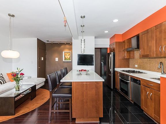 This contemporary modern corner unit is designed to provide luxury and comfort all around. This is a corner 3-bedroom, 2-bath unit offering south western exposures with gracious views from sunrise to sunset. It features a renovated kitchen with stainless-steel appliances, white quartz counter tops, black granite floors and open dining bar; Large dining area leads you to an over-sized enclosed 3 season terrace; 2 renovated bathrooms designed with natural tiles; Beautiful Brazilian flooring throughout; Closets are open Ceiling to Floor finished with smoked glass doors; 100% owner occupied cooperative. Community Room available for rent for reunions, outdoor seating area on the premises, conveniently located to shops, groceries, restaurants, parks, and transportation, near Henry Hudson Pkwy, wait-listed garage parking, but ample street parking with no alternate side rules in the neighborhood. PETS WELCOME! Maintenance INCLUDES ALL UTILITIES!