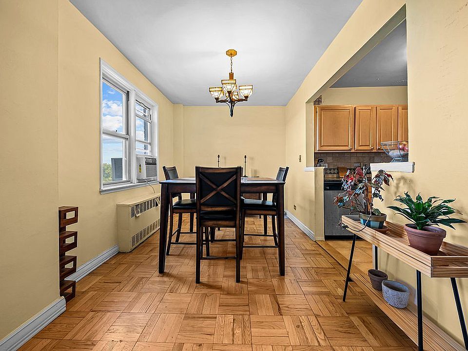 REDUCED!!! Welcome to 5500 Fieldston Road, Apt. 7EE, a high-floor corner unit in the heart of Riverdale. This bright and airy home boasts three spacious bedrooms and two full bathrooms, offering plenty of room to live, work, and play. The apartment is bathed in natural light, thanks to east and south exposures, and offers stunning views overlooking Van Cortland Park. Imagine starting your day with a beautiful sunrise, enjoyed from the comfort of your enclosed terrace, which can be used year-round. The separate dining room is perfect for hosting dinners, and the galley kitchen, complete with wood cabinets and ample counter space, is ready for all your culinary adventures. The parquet floors add a touch of warmth and elegance, and with plenty of closet space, storage will never be an issue. Fieldstondale is a well-maintained cooperative with beautiful grounds, including an outdoor seating area. It offers a range of amenities such as a live-in super, laundry room, storage room, bike room, and a community room. And the best part? The maintenance fee includes gas and electric. The location is truly unbeatable. You'll be close to shopping, restaurants, parks, and transportation options, making commuting to NYC, outer boroughs, Westchester, and New Jersey a breeze. Plus, the building is pet-friendly, so your furry friends are welcome too! Discover the charm of Bronx living at 5500 Fieldston Road, Apt. 7EE. This could be the perfect three-bedroom home you've been searching for. Maintenance includes G&E: $1,920.00 plus building mortgage $106.00 A/C (3) $125.00
