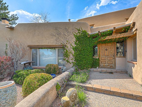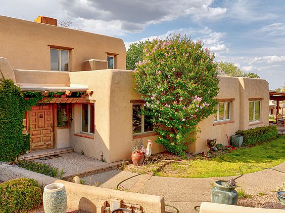Desert Oasis in Rio Rancho! Opportunities like this are rare! This split level Nat Kaplan Adobe home is situated on a little over 12 acres and exudes southwestern charm from top to bottom. Welcomed from the moment you enter with beautiful T&G beamed ceilings, adobe walls, sandstone floors in the living area and more! Very private gated location with 3 separate lots which could be left as one and give you plenty of space or could be divided if desired. Stunning views and a private pond are just added bonuses to this amazing property. Horses OK. Note: Some partial trade properties considered.