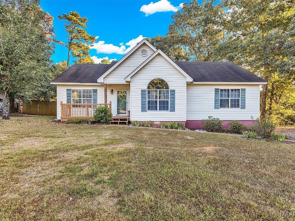 Welcome to 5500 Lightwood Road in Deatsville! This adorable 3-bedroom, 2-bath home sits on nearly an acre in the sought-after Holtville School District. Step inside to find a bright kitchen with stainless steel appliances, a cozy living room with vaulted ceilings and a fireplace, plus a formal dining room perfect for gatherings. The spacious master suite is a dream with two huge walk-in closets and a spa-like bathroom featuring a double vanity, garden tub, and separate shower. Outside, you’ll love the landscaped yard, front and back decks for entertaining, a fully fenced backyard, and a handy detached storage shed. Country living with charm, space, and style all wrapped into one!