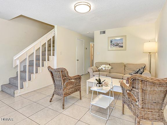 Beachside living at its best! Enjoy the pristine non-drive beach of beautiful Ormond By the Sea just steps away from your property! Brand new roof installed in May 2024. This spacious 2 bedroom/ 2.5 bath condo with an open layout offers resort style living, poolside views, and great amenities. The unit features modern completely updated kitchen and bathrooms, newer appliances, a recently installed front door with a screen, a private screened rear porch, and a lot of natural light. The furniture is negotiable.