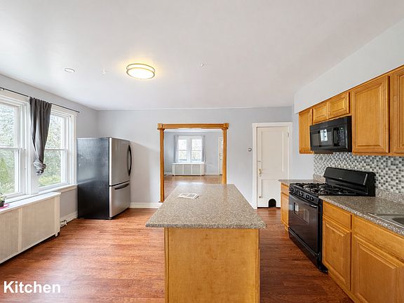 - Recent improvements: Complete kitchen renovation, freshly repainted interior, new vinyl flooring on 3rd floor, new ceiling lights and fans, new boiler, garage roof replaced, rear porch & roof rebuilt, all new vinyl windows.