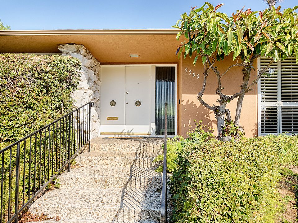 Walk through the front door of this exquisite Mid-Century Modern home in Ladera Heights and you will feel as though you are back in 1960. Being soldby the family of the original owners, this home has been impeccably maintained with breathtaking charm. Extra large corner lot 11,294 SqFt. 4 beds + den, 4 baths, 3336 SqFt. Spacious interior with regal formal dining room. Robust "Great Room" features kitchen, family room with swanky stone fireplace and dining area all open onto backyard and patio. Great step-down living room with stately fireplace and wall of windows. All four bedrooms all w/ensuite bathrooms. Den easily converted to 5th bedroom. Large Master suite w/vanity area, walk in closet and adjoining bath w/dual sinks. Detached guest quarters perfect for nanny, extended stay guest or home office. The two-level back yard boasts a patio, a grassy area that is large enough for a pool, and a basketball play zone.