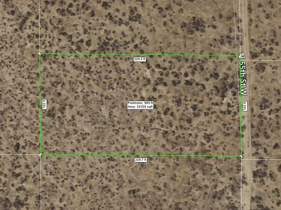 1.25 acre lot with 165 feet of frontage on 55th Street West. Zoned A11 for agriculture, animals, and a home. APN 3201-004-085.