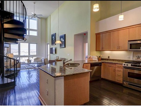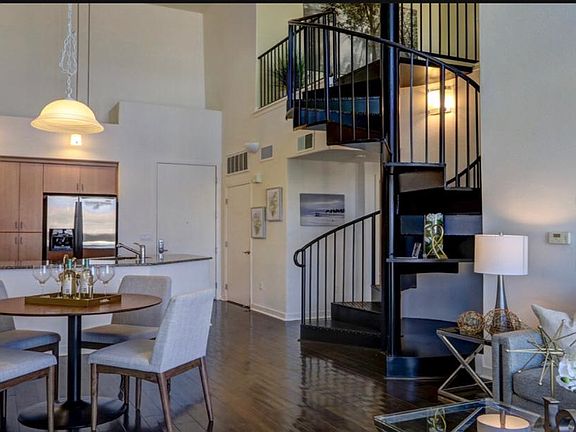 This stunning penthouse condo is located in the Elan at Dublin Station Community. It features a spacious two-bedroom, two-bathroom layout with a breathtaking contemporary spiral staircase leading to a private den/office space with a balcony on the second floor. The living room boasts a stunning 18-foot ceiling, ample windows, and natural light, while another balcony offers a lovely outdoor space. The open kitchen features granite countertops and two reserved parking spaces in the underground garage. The HOA fee covers water, gas, waste, and various amenities, including a gym, community/game rooms, and more. Freshly painted house with modern remodelled bathrooms and new carpets. The house includes smart temperature control thermostat. Conveniently located just a short walk from the Dublin BART station, shops, restaurants, and parks, this condo offers a prime location for all your needs.