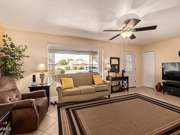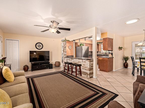 Welcome to this stunning, FURNISHED, updated home in Dreamland Villa 55+ community! This home offers the perfect blend of comfort, style, and convenience. Thoughtfully updated and Impeccably maintained over the years, you'll appreciate the newer AC (2024), dual pane windows, blown in insulation, & skylights for energy efficiency. The updated kitchen with SS appliances, RO system and fabulous breakfast bar are a highlight of the open concept layout. Tile flooring flows throughout the living space and into the versatile AZ Room. The bedrooms are spacious with plank flooring, ceiling fans, & ample closet space. Both baths have been tastefully updated with modern finishes and easy-care tile. The functional laundry room features convenient built in storage along with additional space for pursuing your favorite projects. This home offers more than just upgrades - it's part of a vibrant 55+ community where you'll find a welcoming atmosphere, neighborhood amenities with a wide range of activities including clubs, pools, pickleball, workout facility & more. With its combination of updated features, low-maintenance living, and inviting spaces inside and out, this property is move-in ready and waiting for you!