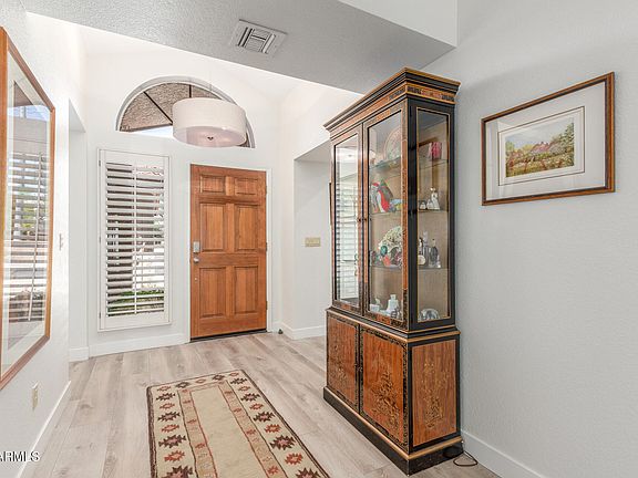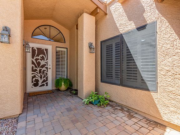 Stunning single-story home nestled in the popular Orangetree Villas! The foyer will lead you to the spacious living areas, where you'll be greeted with wood-look flooring, soaring vaulted ceilings, plantation shutters, a fireplace to add warmth, and a neutral palette. The kitchen is complete with spacious cabinets, ample counter space, and built-in essentials for a seamless cooking experience. Enjoy your morning coffee in the eat-in kitchen with large windows allowing maximum natural light. Off the kitchen, find the formal dining space with patio access. The seamless connection between living and dining provides the perfect space for gatherings, and multiple doors to the gorgeous patio capture indoor/outdoor living at its finest! The split floor plan allows for privacy and ultimate functionality.