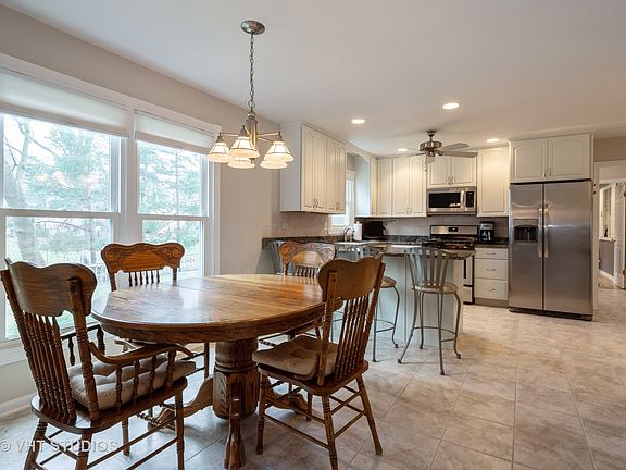 3292 Square Foot Extra Large Model plus finished basement for extra living space. Granite and Stainless Kitchen with updated baths throughout. 1st floor laundry and separate office plus Formal Dining Room for family gatherings. Large master suite with multiple closets, Generous entertaining deck (w powered SunBrella) plus stamped concrete patio (w powered SunBrella) on Creekside location for your outdoor engagements. Professional landscaping allows for a private backyard with path and mere steps to neighborhood park. Slip out the backway down to Algonquin Rd and minutes to N or S Rte 53. Newer roof, siding and windows with rebuilt furnace and new water heater. Meticulously maintained home. Garage storage system excluded. Hunting Ridge Elementary and WM Fremd High School!