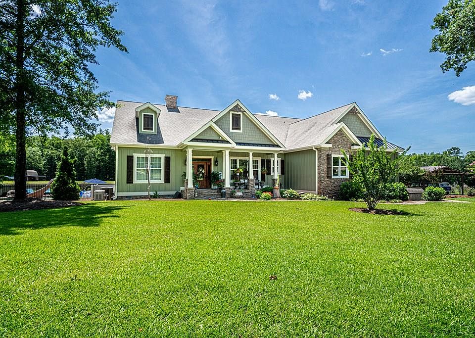 Country road take me home...to this beautifully built custom home with impeccable finishes and 64 acres of glorious countryside. Buy dirt! Enter the gate at 5501 J R Sims Road and follow the long drive to your dream home. When you enter the front door of this home you are completely captivated by the beauty and attention to detail in every room. This home features a split plan with all bedrooms on the main level. The primary bedroom suite features a luxurious bathroom with a clawfoot porcelain tub, separate tile shower, double vanities, large walk in closet with a custom closet system. The kitchen is updated with all of the essentials you can ask for and an organizers dream pantry. Just off of the kitchen is a well organized laundry room. Run up the stairs and enjoy a family movie night in the media room . Outside, the grounds are beautifully landscaped all around and you can fish in the backyard off the dock at the pond or swim in the in-ground gunite pool or sit on the relaxing southern back porch and watch while the kids swim. There is a detached garage for your handy man's hobbies and fenced in areas for horses or other farm animals you may want. 5501 J R Sims Road will not disappoint! Its a MUST SEE today! Call for your appointment now!