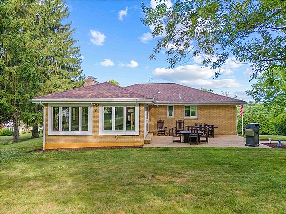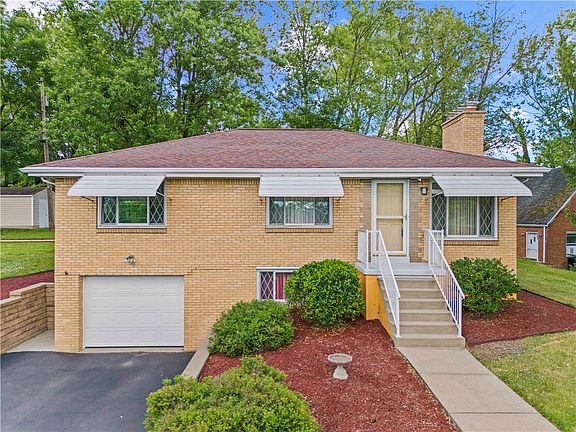 Cute as a button, meticulously well maintained house with many updates. Very clean, light and bright. Great house for entertaining. One level living thru 18X14 four season room, with Pella windows, French doors that lead into the dining room, rear patio. Kitchen with custom made cabinets and granite counter tops. Living room with stone log fireplace. 3rd bedroom used as a office with shelving. Large game room with stone gas stone fireplace. Full bath with steam shower. 4X3 storage room and closets. Park like rear yard with light pole, rear shed. Large turn around driveway off the house garage. MAN CAVE, large 40X30 six car detached garage or RV & boat, two 10' garage doors with 12' ceiling, concrete floors. half bath. 220 electric. Walk to park "T" & shops. 30 minutes to Pittsburgh and airport.