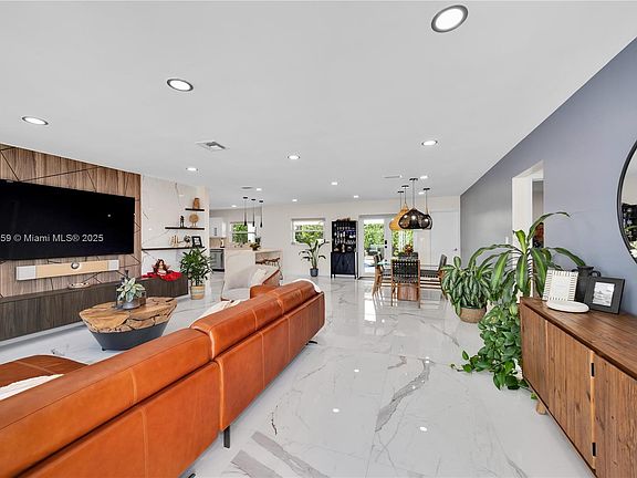 Upgraded 3-bed, 3.5-bath home in Hollywood Hills with a split open floor plan, ideal for daily living and entertaining. Features a bright living room, formal dining, and updated kitchen with new appliances. The private backyard boasts artificial turf, a 45-ft pergola, ambient lighting, full outdoor kitchen with dual grills, fridge, ice maker, sink, and beer keg. Enjoy a saltwater heated pool with jets, mosquito misting system, and surround sound. New roof and 3.5-ton AC (2020), expanded driveway. Quiet neighborhood near good schools, Memorial Regional Hospital, Downtown Hollywood, airport, and beaches.