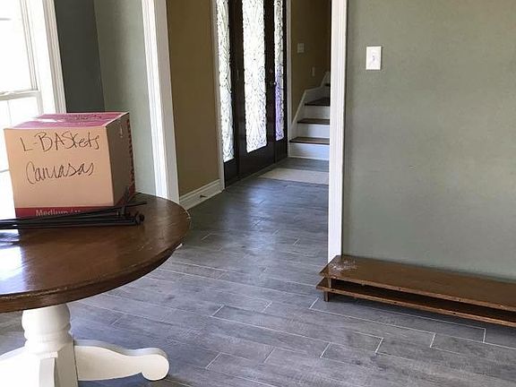 4 Bedrooms with a large wrapped front porch. 2 story vaulted living room with plenty of natural light. The sunroom overlooks the back lot. An oversized deck leads to a new above ground pool. The house is off the road a bit and with no neighbors behind us, despite being in a subdivision, we feel somewhat secluded. Most of the downstairs was recently outfitted with new flooring. It’s a beautiful gray tile that looks like weathered barn wood.