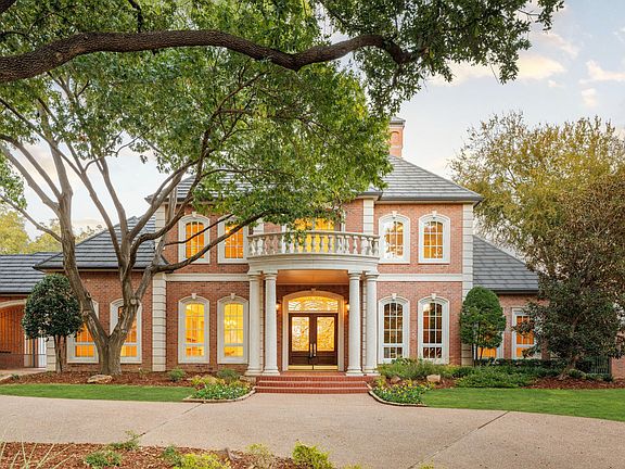 Tucked away on a quiet cul-de-sac surrounded by lush, mature trees, this breathtakingly exquisite estate offers more than 9,000 square feet of refined living overlooking Number 16 of the Gleneagles Queen’s Course. A circle drive, grand double-leaded glass doors, and manicured landscaping set the stage for the sophistication within. Inside, the home impresses with soaring ceilings, marble floors, and intricate crown molding. Sunlight floods through expansive windows framing sweeping views of the pool, creek, and rolling hills beyond. A dramatic curved staircase greets guests in the foyer, while the formal living and dining spaces are complemented by a butler’s pantry with built-ins—perfect for entertaining in style. The den, featuring a stately wood coffered ceiling and wet bar, looks out to tranquil golf course views. A game room with a second wet bar offers the ideal space for relaxed gatherings. The gourmet kitchen is a true centerpiece with Thermador and GE Profile appliances, a massive island, a FiveStar commercial-grade 6-burner cooktop, double ovens and dishwashers, and new custom cabinetry. The first floor primary suite provides a sanctuary of luxury with a sitting area overlooking the greens, a cedar closet, and a spa-like bath with a freestanding tub, marble shower, dual vanities and toilets, and a bidet. An upstairs second primary in-law suite features a balcony and fireplace. Beyond the interiors, enjoy a resort-style outdoor experience with an expansive pool deck, lush play yard, and full pool bath. Thoughtful details abound, from a four-car garage to a potting room workshop off the garage and a back staircase for convenience. An extraordinary blend of craftsmanship, comfort, and setting—this estate captures the essence of luxury golf course living in one of North Texas’s most prestigious communities.