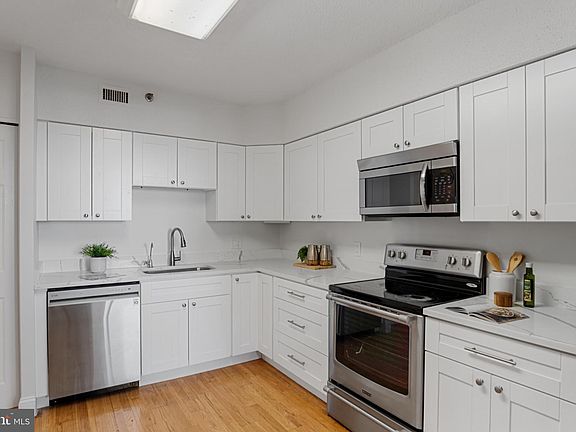 2 Beds | 2 Baths | 1,329 Sq Ft | Garage Parking + Storage Welcome to Skyline Square Condominiums, where two meticulously maintained buildings meet to offer accessibility, serenity, and luxury. This Calvert model is in a premium location, perched on the 20th floor of one of Northern Virginia’s tallest residential towers. To describe this property as spacious would be an understatement, as it offers 1,329 square ft. of premium living space and tons of closets and storage. Sweeping panoramic views of the DC skyline, Air Force Memorial, and Tysons Corner—are all attained by stepping onto your private nest in the sky, the large private balcony. With nothing but open sky between you and the horizon, your morning coffee just got a serious upgrade. Inside, experience affordable luxury at its finest. Real hardwood floors flow through the main living areas, while plush, high-end carpet adds warmth to both bedrooms. Natural light pours in through large, recently replaced energy-efficient windows, giving every space an airy, open feel. The renovated kitchen features sleek new cabinetry, Calacatta Idillio quartz countertops, and stainless steel appliances. Both bathrooms are fully updated with modern ceramic tile flooring, new lighting, and designer finishes. Let the laundry pile up—when you're ready, your large-capacity side-by-side washer and dryer are right there in your laundry closet with built in cabinetry ready to handle it with ease! Freshly painted from top to bottom—including closets, ceilings, and trim—in a soft, versatile neutral color, this home is truly move-in ready. At Skyline Square, residents enjoy resort-style amenities including a pool, fitness centers, steam and sauna rooms, billiards, pingpong, a party room, car wash, electric vehicle charging, garage parking, and private storage. With a Walk Score of 70, dining, shopping, and daily essentials are just steps from your front door. Located on the edge of Falls Church, Alexandria, Shirlington, and N. Arlington Skyline Square was envisioned by developer Charles E. Smith as a “total living environment”—and it still delivers. You’ll be just 9 miles from the heart of D.C., and minutes to Amazon HQ2, Pentagon City, the AlexWest redevelopment with Harris Teeter, the Landmark Mall Redevelopment, Trader Joe's, The Fresh Market, Giant, and key commuter routes like I-395, I-495, and Reagan National Airport. This is luxury, location, and a carefree lifestyle—all wrapped up in one spectacular view.