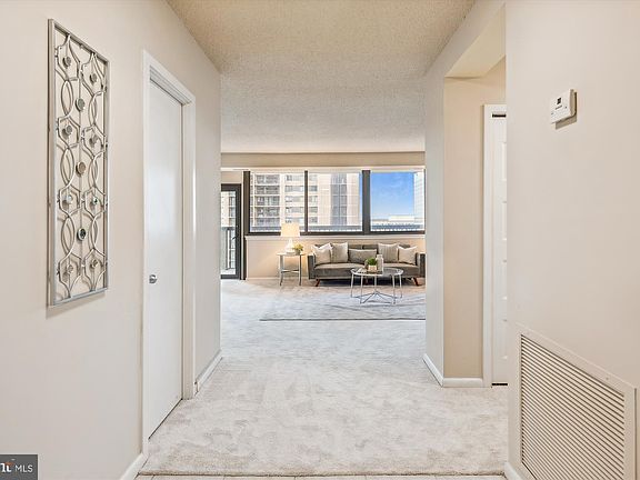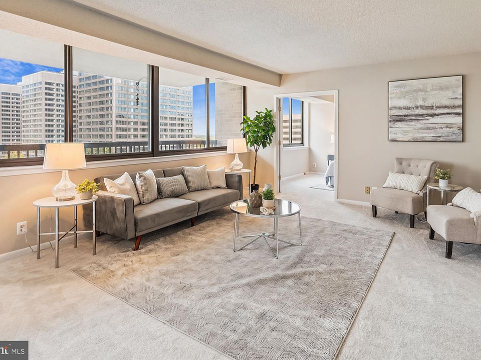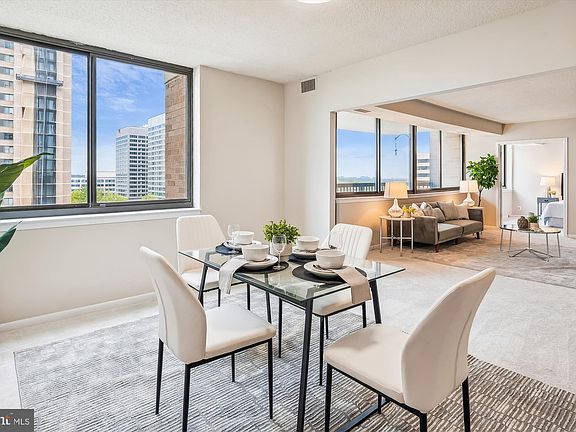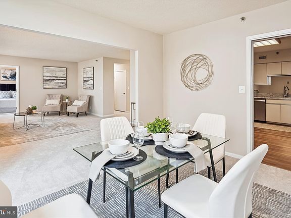 This 3-bedroom, 2-and-a-half bath end unit condo offers over 1700 square feet of sophisticated living space. Large enough to live like a house, you step into the formal entryway, complete with a half bath and a huge walk-in closet. Then enjoy a generously sized living room (big enough to hold a sectional sofa AND a baby grand piano!) and a separate dining room with plenty of space to entertain. The gourmet kitchen features stainless steel appliances, new granite countertops, and eat-in space. The huge living room opens to a wall of windows and a large balcony, with room for a table and chairs to enjoy the sunshine. Behind French doors, you'll find the first bedroom/den with built-in shelving. Down the hall, you'll find a full hall bath, a spacious primary bedroom with an ensuite bath, and another bedroom. Tons of closets and storage throughout! This beautiful condo is completely move-in ready, with fresh paint throughout and brand-new carpeting. With TWO garage parking spots AND a storage unit, storage dilemmas are a thing of the past. Enjoy the breathtaking views from your spacious balcony that overlooks the tranquil pool. Newer HVAC too! As part of the building amenities, enjoy a fitness center, benefit from the 24-hour concierge service in this secured building, and take a dip in the expansive pool. Only 5 miles away from the Pentagon, 7 miles from Reagan National Airport, and minutes away from the best shopping and restaurants at Tysons Corner. Welcome home!