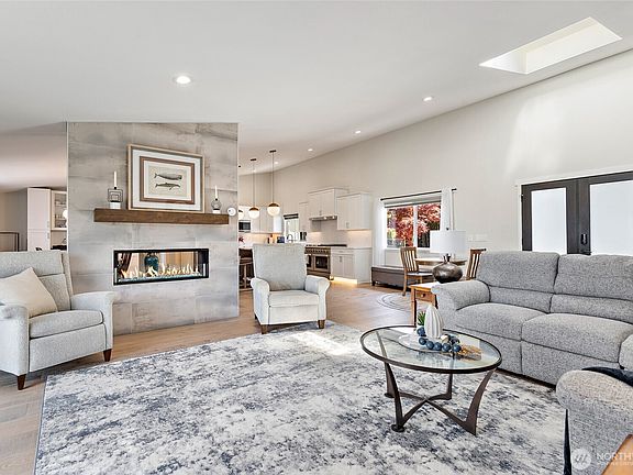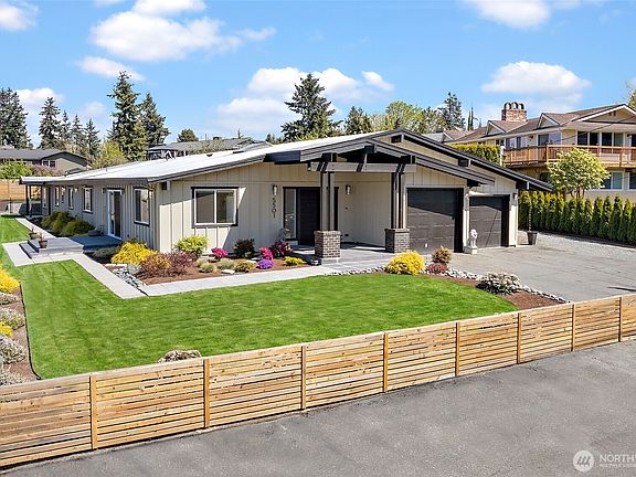 This rare find features a 1 bedroom ADU w/full kitchen, bath, laundry & exterior access plus a stunning, spacious & stylish 1 STORY luxury home fully renovated in 2020 with open plan, 4 bedrooms, 3 baths, partial Sound/mountain/ferry views & 100k in recent upgrades! Light & bright living area w/vaulted ceilings, skylights, engineered hardwoods, gas fireplace, dining area, den & kitchen w/quartz countertops, huge island, pendant lighting, custom cabinetry & stainless appliances. Enormous master suite w/luxurious spa-like en-suite 5 pc bath & enormous walk-in closet. Fabulous exterior spaces includes the sun-drenched patio, dog run, huge fenced yard & RV parking. Tankless HW, Central AC, Smart wired.