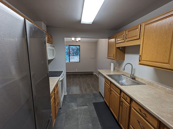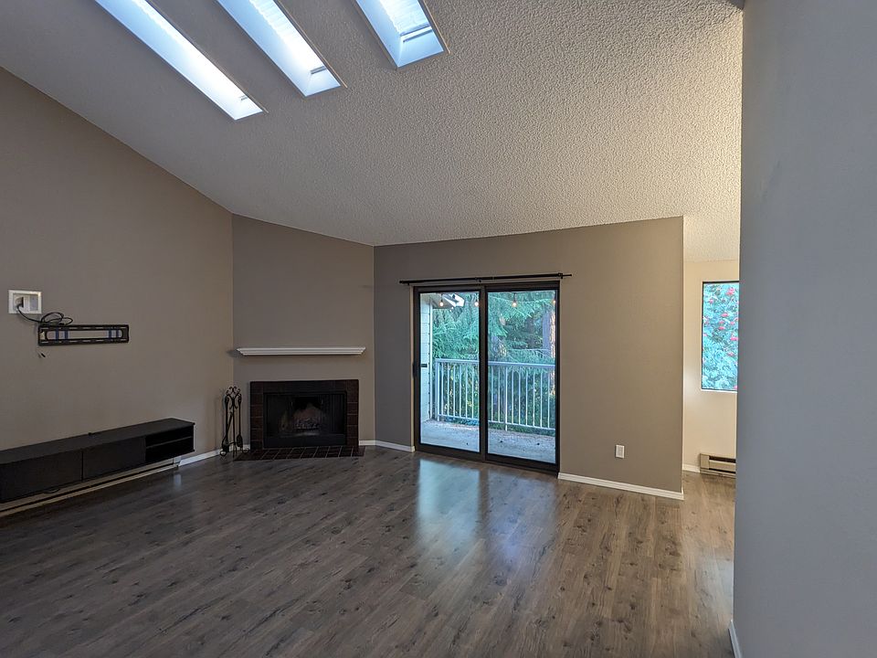 Welcome to Parkside Condos in the heart of Mountlake Terrace! This spacious 2-bedroom, 2-bath home offers comfort, convenience, and a peaceful greenbelt setting. The open living area is enhanced by vaulted ceilings with skylights, filling the space with natural light. Enjoy your morning coffee or unwind in the evening on the private back patio with wooded views.