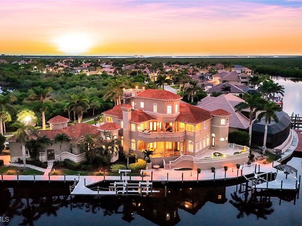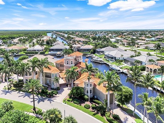 The Ultimate Cape Harbour Estate for Boating, Yachting, RV, and Car Enthusiasts. Located behind Gate 3 in the prestigious Estates of Harbour Preserve, this luxury waterfront property offers 300 feet of deepwater frontage, 150 feet of yacht slip space with dockside full bathroom and accommodations, and two high-capacity boat lifts (36,000 lbs and 15,000 lbs). Enjoy fast, unrestricted Gulf access to Boca Grande, Captiva, Useppa, and world-famous beaches. Take the Okeechobee Waterway to Florida’s East Coast, the Bahamas, and beyond. This estate also features a rare 42-foot AC RV garage for a motorcoach, multiple cars, or collectible vehicles. Garage space to accommodate up to 8 cars with lift systems. Built like a bunker! This 3-story home was built by bespoke luxury home builder PGI Homes, constructed to commercial standards with concrete floors and walls, impact-rated doors and windows, a whole-home fire suppression system, and a full 3-floor elevator. The open floor plan showcases soaring ceilings (up to 2 and 3 stories high), custom hardwood, imported Travertine floors from Turkey, new carpet, new paint, mosaic ceiling accents, custom lighting & chandelier, and a handcrafted spiral staircase w/ gold leaf detailing. A gourmet kitchen with Viking gas range, custom wood cabinetry, a butler pantry, and a wet bar flows into spacious living & dining areas. Wow your guests with a formal dining room with a dramatic 3-story ceiling and 3-tier chandelier, a private wine cellar, multiple elegant living spaces, and expansive waterfront balconies and breathtaking views. 1st-floor master bedroom with stunning coffered ceiling, seating area overlooking the water, and private entrance to the yacht slip/dock. The master bathroom offers a resort-spa experience, dual vanities, a massive walk-in shower with a hidden private 6-person Jacuzzi, soaring 2-story ceilings, and a TV. Expansive walk-in closet includes hidden safes along with built-ins ideal to showcase fine clothing, shoes, and handbags. Outdoor kitchen, heated salt-water pool and spa, and intersecting canal & basin views. Several en-suite guest bedrooms and balconies upstairs, along with a rare 3rd-floor bedroom with views of the preserve, river, and even Sanibel in the distance. Used as a grand private office, but can be a bedroom. 4th floor rooftop terrace with the most breathtaking views of the city, river, and barrier islands! Imagine sipping a cocktail from one of the highest residential decks in the city, watching the skyline light up with fireworks on New Year’s Eve. The 2-story guest house has a full kitchen, a living room, a bedroom, two full baths, and a private balcony. Perfect for guests, caretaker, mother-in-law suite, or extended family. A true boating crossroads positioned for adventures to the Florida Keys, Gulf Coast, and beyond. SELLER FINANCING AVAILABLE! Waterfront dining includes Rumrunners, Fathoms Waterside, Oyster Bar, and The French Press—all offering water views and live music.