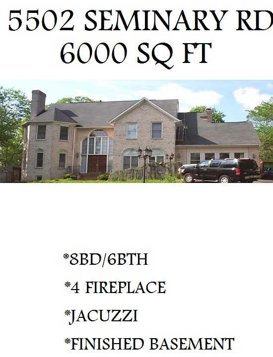 This 6000 square foot single family home has 8 bedrooms and 6.0 bathrooms. This home is located at 5502 Seminary Rd, Alexandria, VA 22311.