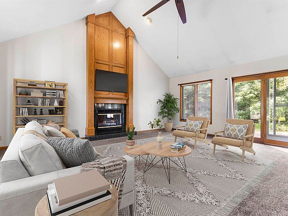Spacious condo in a serene setting! Your next home opens with an impressive living room with vaulted ceiling and a stunning floor to ceiling gas fireplace, expansive windows with plant ledge and gorgeous views of the private rear yard. The living room flows right into the dining area, great for entertaining. The handsome kitchen has ample counter space, oak cabinetry and stainless steel appliances. There's a separate handy main floor laundry room with sink and extra storage. A half bath completes the main level. Upstairs you will find a landing area perfect for a office or library nook. Double doors usher you into the substantial primary suite with double closets and private bath with shower attached. The second bedroom also has a full bath attached and a walk-in closet. The finished lower level has a family room with built-ins and new beverage refrigerator and a flex room that could be used for a workout room, office or hobby room. There's a huge workshop area with storage. Outside is a low maintenance composite deck and patio both providing a relaxing spot to enjoy the wooded lot with no neighbors behind. Well maintained with nice carpeting and tile flooring, quality six panel doors, GFA/AC 2018, water heater 2022, roof 2022, newer driveway. Home warranty still included for extra peace of mind. Fantastic Roscoe location just minutes to shopping/dining. Pet friendly, no renting allowed, owner pays for own lawn/snow removal/insurance. Some photos are virtually staged.