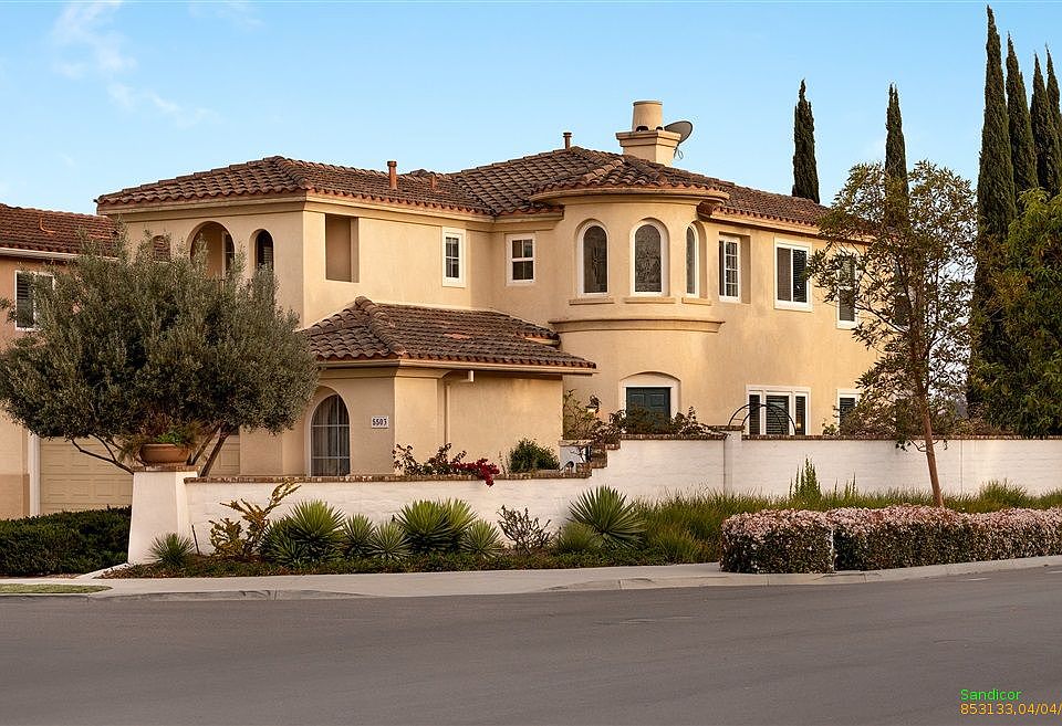This architecturally stunning Pacific Highlands Ranch home is awaiting your arrival. As you enter you will gaze upon gorgeous wood flooring, dramatic arched doorways and large windows that bathe the living spaces in natural light. A separate living room and formal dining room provide the perfect space for all your gatherings. The kitchen and family room flow seamlessly together for ease of daily living. The kitchen offers an abundance of cabinet and counter space, a 5-burner gas cook top, double oven, granite counters and an eat-at breakfast bar. A bedroom and full bathroom on the main level make entertaining a breeze. The bonus room upstairs is illuminated by stunning leaded windows. The front bedroom enjoys a serene balcony. The master suite is spacious providing room for rest and relaxation and a huge walk-in closet, while the en suite bathroom offers a garden tub, step-in shower and a double vanity. Drink in unobstructed views of Del Mar Mesa from the master bedroom. Also, this home is nestled on a corner lot with only one neighbor. Entertaining will be a breeze in the backyard on the large patio. The community features biking/hiking trails, BBQ area, a clubhouse, exercise room, sparkling pool and spa. To see it is to love it!