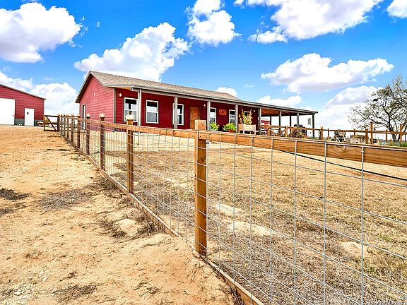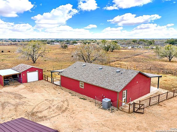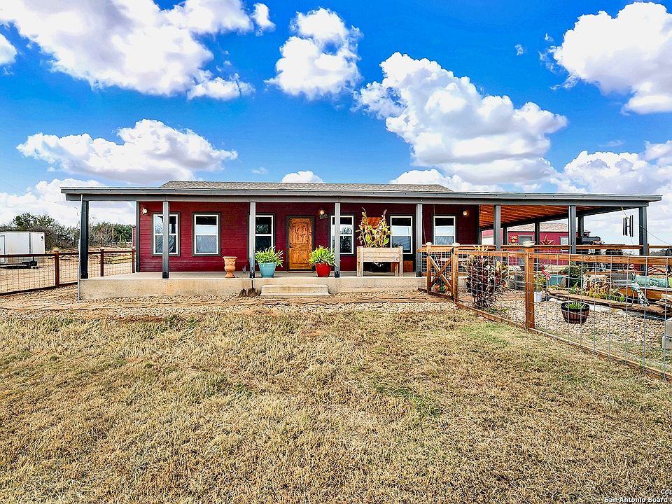 Escape to quiet country living with this stunning 2-acre (unrestricted) property, featuring a beautiful 2-bedroom, 2-bathroom custom home built in 2023. The home boasts custom woodwork throughout, including a spacious primary suite with huge custom walk-in closet and a luxurious walk-in shower. Enjoy outdoor living on the expansive 984 sq ft wrap-around porch, prewired for a hot tub, perfect for relaxing or entertaining. In addition to the main house, this property offers fantastic outbuildings including a 16' x 20' shed with a garage door, currently being used as a workout room, and a 30' x 40' shop with a 10' x 10' roll-up door, 220 wiring, and plenty of room for projects or storage. The front of the home features a picturesque Koi Pond, complete with thriving fish, adding to the tranquil ambiance. The property is fully fenced along the perimeter, with an additional fenced area around the house for added privacy. Located in the peaceful, rural area of Adkins, TX just off FM 3465, this property offers the perfect blend of serenity and convenience. Don't miss the chance to make this dream home yours! Schedule a showing today and experience the beauty of country living!