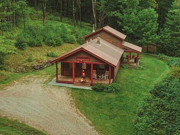 Lovingly referred to as Camp Mt. Holly, this private 16-acre cabin retreat is just 15 minutes from Okemo Mountain and Ludlow. Featuring mid-century modern design, this property offers everything needed for a weekend getaway or a lifetime retreat. The first floor includes a bedroom, modern bathroom, living room with wood stove, and a full kitchen. Upstairs, a loft bedroom provides additional space. Enjoy cozy nights by the wood stove or gather around the firepit with Adirondack chairs. The property also boasts private trails, a river with a hidden wading spot, and a charming sugar shack! Offered turnkey with all furnishings included, you can move right in and start enjoying the Vermont lifestyle. With 16 acres of woods to explore and proximity to top recreation, dining, and shopping, this cabin is the perfect Vermont retreat. Strong rental history!