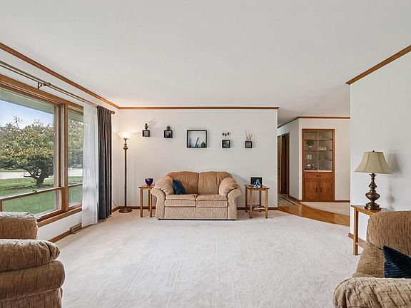 Charming 3-bedroom, 1.5-bath ranch offering comfort, style, and a peaceful yard. Enjoy the warmth of a wood-burning fireplace in the den or unwind on the covered patio. The home offers many construction upgrades: hardwood flooring, crownmolding, epoxy-coated garage floor, and a slate foyer to name a few. Enjoy Packer games and entertaining at the bar in the rec room. A finished office in the basement, perfect for working from home in a quiet setting. The home features a ton of storage options. Major updates include: roof (2025), furnace (2010), and central air (2011). The kids can play in the huge yard (.46 acres), or head over to Fairy Chasm Youth Sports Facility. Schedule a showing of this beauty today.