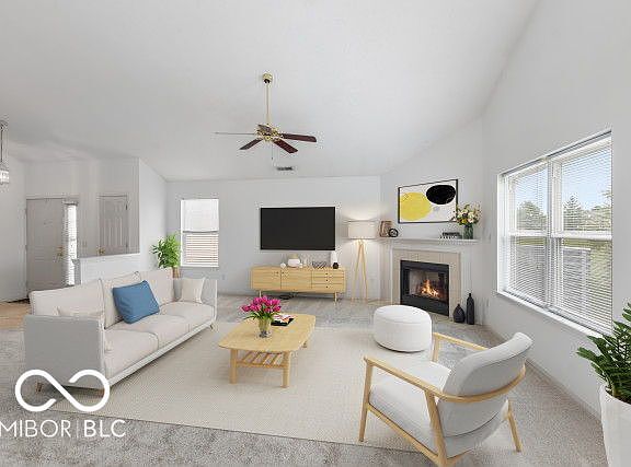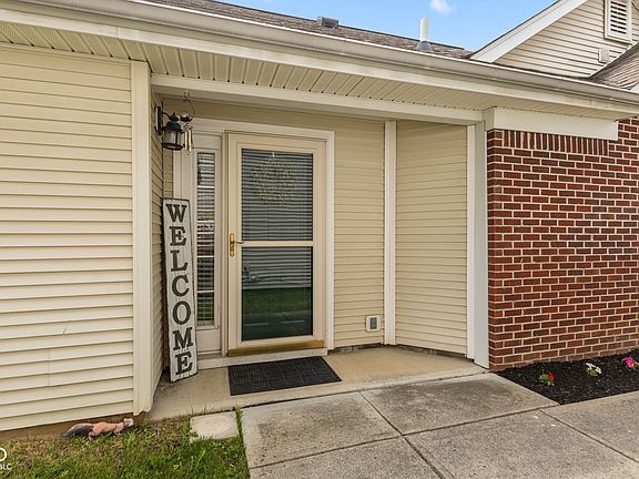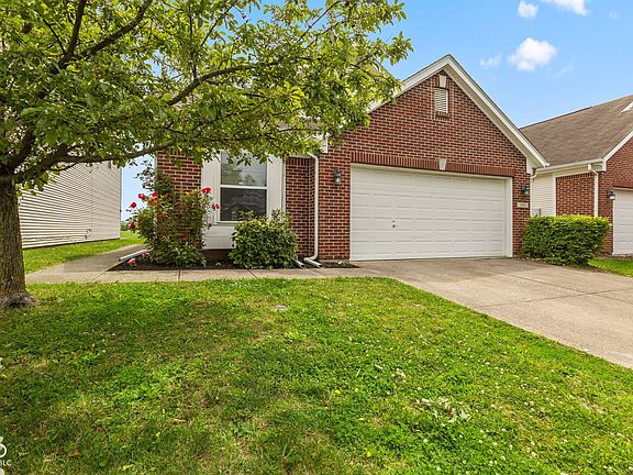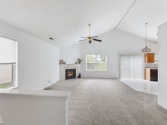 Welcome home to this charming 2-bedroom, 2-bath ranch in the desirable Benjamin Square neighborhood! As you walk in, you'll love the open feel with 9' vaulted ceilings and a fireplace in the family room. The family room then flows right into the dining area and kitchen which makes it great for entertaining or just relaxing at home. The primary bedroom is your own little retreat, complete with a private ensuite featuring double sinks and a big walk-in closet. Updates include roof, HVAC, washer and dryer, fresh paint throughout, and brand new carpet. You'll be just minutes from Fort Harrison State Park, scenic trails, great schools, shopping, dining, and downtown Indianapolis. This is a must see, you don't want to miss out on this one!