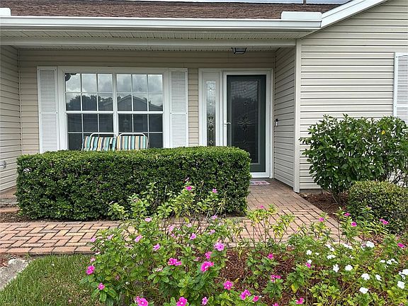 This meticulously maintained 2BR,2b Turnkey home is ready for you to move right in. Great curb appeal with a paver driveway and walk that leads you to the charming front porch. You enter through a beautiful glass front door with matching side lite. The high ceilings and laminate flooring throughout the home provide a classic look. The combined living room/dining room combination give you a large open area that will allow you to create a space to meat your individual style and needs. Currently they are combined to provide a large living room but can be divided to add a more formal dining room. The large kitchen has lots of cabinet and counter space. The eating area opens to the enclosed lanai. The lanai also has doors to the living/dining room and to the primary bedroom. The large primary bedroom has a walk in closet an updated ensuite bath with a walk-in shower and sky lite. The second bedroom and guest bath will delight your guests. The private backyard has a great view of nature and NO NEIGHBORS BEHIND YOU. This home is perfect whether you plan to be a full time or part time resident. Schedule your showing soon so you don't miss it. Pack your bags move right in so you can begin living the life you have dreamed of in the Florida sunshine. The Plantation at Leesburg is a a gated 55+ community that offers a great lifestyle and is an active community. It boasts 3 activity center, 3 pools with spas, 2 gyms, tennis and pickleballs courts, a driving range and 2 18 hole golf courses, along with many other amenities, clubs, etc. New AC 2021