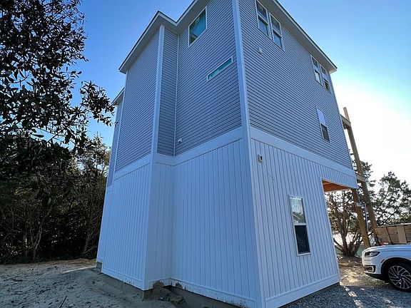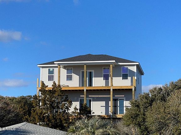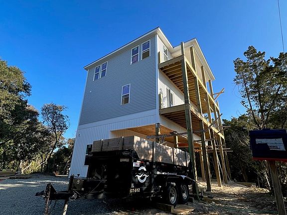 LOCATION, LOCATION with great sound and fantastic ocean VIEWS! Watch the waves roll in! Under construction. 6th row to ocean! 4th row to sound! 3 story reverse floorplan with an ELEVATOR! ***Top floor...Large, open living room, dining area, and eat in kitchen w/ island all with VIEWS! Half bathroom in hallway. Spacious master suite with ocean views, large walk in closet, and bathroom with double vanity, walk in shower, and linen closet. ***Second floor...Bedroom 2 with ocean views. Bedroom 3 is a second master suite with ocean views, walk in closet, private full bathroom with double vanity, walk in shower, & linen closet. Large den that opens to front deck with yes, more ocean views! Full hallway bathroom with double vanity & tub/shower....laundry room too. ***Ground level...off the carport, the foyer entry leads to elevator & stairs as well as a flex space room. Outside is a golf cart storage garage and outside shower too!!! 2300 heated/cooled sq ft for a family & their friends to enjoy as well as lots of decking to enjoy! Buyer can personalize with choices of flooring, countertops, interior paint colors, and appliances. Driveway to the home is a private driveway easement off Emerald Drive...lot is nice and private too! Ocean access is one block away. Home will make a good primary or secondary home as well as an investment property. Rental analysis from 2 local companies can be provided & are in MLS documents. (A $58,000-83,000 & B $$38,000-48,000). Come take a look at location and the plans to go along with the home! You'll love it!!!