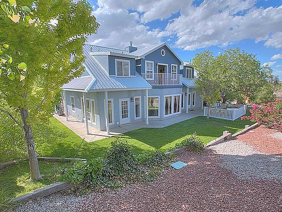 This magnificent custom home rests on one acre of land with VIEWS!!! This home is in the CLEVELAND H.S. District. Zoned E-1, this is the perfect horse property. It has a two horse paddock, hay storage and a tack room. There are TWO MASTER SUITES with en suite bathrooms, plus an additional bathroom and two spacious bedrooms! Upstairs also includes a office area that could be a fifth bedroom. There's even a laundry chute! Amazing views of the Sandia Mountains from the balcony off the upstairs master suite which also includes a beamed ceiling, fireplace, and walk-in closet! The additional master suite is downstairs and would make a lovely guest room or in-law quarters. An open floor plan where the kitchen opens up to the living and dining area. The kitchen has a walk-in pantry.
