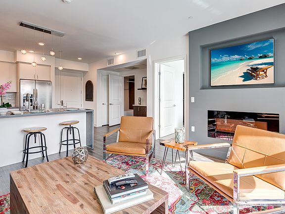 - Exterior features: *In Select Units, 24/7 Emergency Maintenance Service, Breakfast Bar*, Built In Cabinetry, Custom Top of the Line Finish Cabinetry, Designer Fixtures and Hardware, Equistie Quartz Stone Countertop and Buffets*, Formal Dining Area*, Gourmet Kitchen with Stainless Steel Energy Star Appliances, Hardwood-style Plank Flooring, Large Private Balconies, Mirrored Closet Doors, Modern Mosaic Backsplash in Kitchens, Non-smoking Apartment Community, Penthouse Units with High Ceilings and Lofts*, Pet Friendly - 2 Pet Maxiumum, Pet Park, Recreataion Room with Professional Billiard Table, Smart Home Leviton HomeKit Lighting Control, Smart Home Nest Thermostats, State of the Art Dance Studio, TV Lounge, USB Charging Outlets throughout each Unit, Waterfall Style Quartz Countertops*