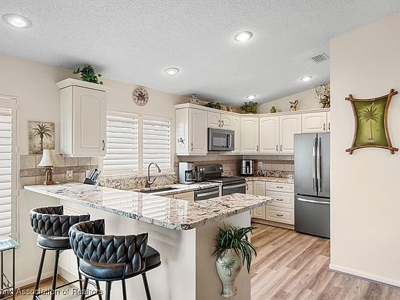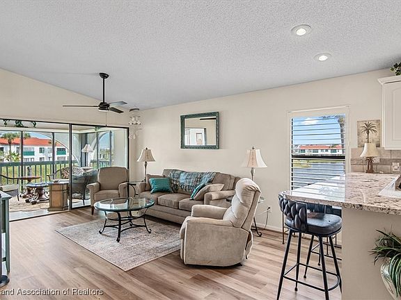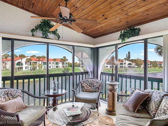 BEAUTIFULLY UPDATED & FURNISHED LAKEFRONT CONDO in the 55+ gated community of The Bluffs of Sebring. GORGEOUS best describes it! This 3-Bedroom, 2-Bath condo has been updated with luxury vinyl plank flooring, plantation shutters, new kitchen appliances, granite countertops, and both bathrooms have been remodeled including a soaking tub in the guest bath. The stunning kitchen features new stainless steel appliances, an abundance of cabinets, granite countertops, tiled backsplash & a breakfast bar completely open to the dining area & spacious great room. The primary suite boasts serene lake views, a walk-in closet & en suite bath with dual sink vanity & tiled walk-in shower. The two inviting guest bedrooms, one with a walk-in closet, share a beautifully remodeled guest bath with soaking tub. Enjoy peaceful mornings & beautiful sunsets from the 11x13 covered, screened lanai with tile flooring & sliding glass windows, offering fantastic views up and down the lake - the perfect spot to unwind or host friends. Residents of The Bluffs of Sebring enjoy an active, resort-style lifestyle with a heated pool & spa, clubhouse, game & exercise rooms, library, tennis, pickleball & much more - all nestled around a picturesque 14-acre private lake. Experience the best of lakefront living in this MOVE-IN READY, BEAUTIFULLY UPDATED & COMPLETELY FURNISHED exceptional condo!