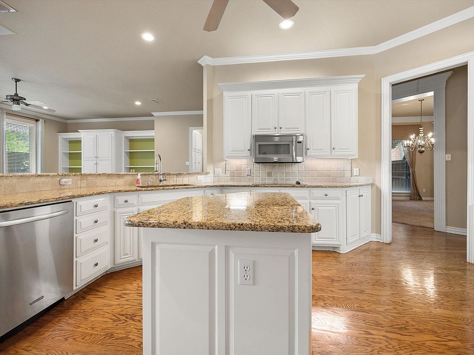 Welcome to beautiful custom property in the exclusive gated community of Moorewood Estates. Offering a thoughtful layout & timeless updates, this home is designed for comfortable living & elegant entertaining. Enjoy two spacious living rooms, two dining areas & a generous breakfast nook, perfect for gatherings large or small. The open-concept layout seamlessly connects the main living area with the eat-in kitchen, featuring neutral updates, a large center island, double ovens, a walk-in pantry, built-in hutch & desk & ample counter space, including a coffee bar area. Cozy built-ins & a gas-burning fireplace with an electric starter add warmth & charm. The primary suite & one secondary bedroom are conveniently located downstairs. The oversized primary suite is a private retreat with a sitting area, en-suite bath & a huge walk-in closet. Wall of windows overlook the lush backyard & sparkling pool, flooding the space w natural light. A second full bathroom downstairs is perfect for guests & also provides direct access to the pool area. Upstairs, you'll find two additional bedrooms connected by a Jack & Jill bath, each with walk-in closets. Dual staircases offer easy access from both ends of the home, while a spacious landing with an adjacent sitting or play area adds flexibility. A massive under-stair storage closet & an upstairs bonus storage closet add practicality. The laundry room features updated finishes, a folding station, utility sink, hanging area, & space for a second fridge. Step outside to your private oasis. The beautifully landscaped backyard showcases a resurfaced pool with new tile, remote-controlled color-changing lights & handrails-2023. A grassy space is great for kids & pets alike. Additional features: 2 HVAC units & tankless water heater- 2022, tons of built-in storage throughout & side entry THREE car garage with extra fenced parking for recreational devices. BEAUTIFUL WOOD FLOORING IS UNDER THE CARPET IN THE MAIN LIVING ROOM!!